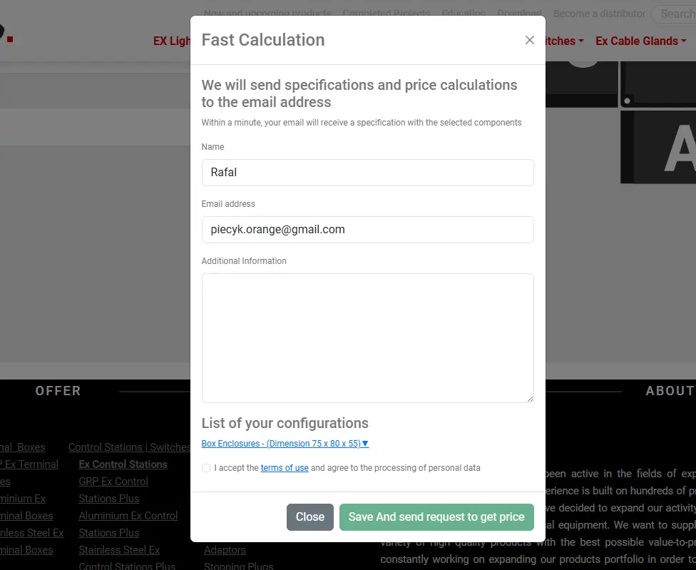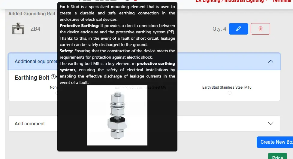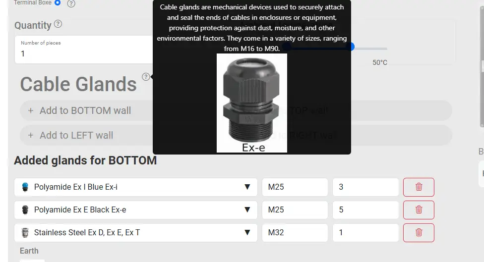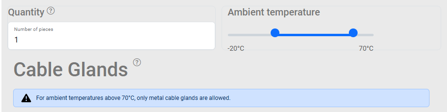 System pozwala określić ilość zamawianych obudów oraz zakres temperatury pracy. Temperatura jest kluczowym parametrem dla obudów ATEX, wpływającym na dobór dławików.