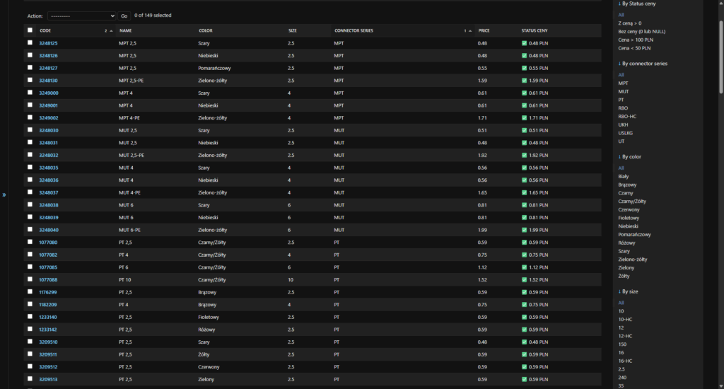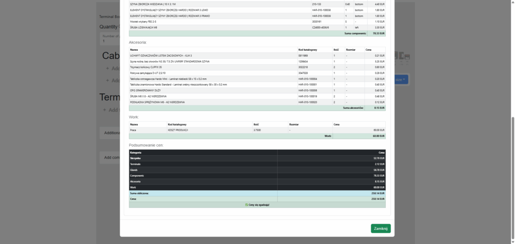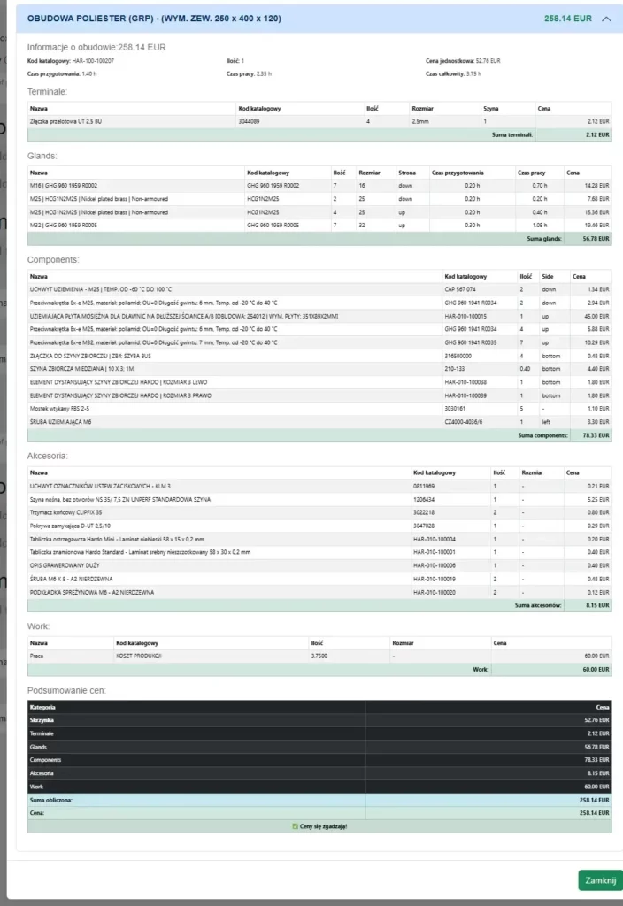 - Specyfika zamówień: Konfigurator radzi sobie z podstawowymi realizacjami. Bardziej skomplikowane zamówienia (niestandardowe krzyżówki, komponenty firmy Eaton, specyficzne układy zacisków) na razie będą obsługiwane “po staremu” lub wymagają ręcznej ingerencji handlowca.